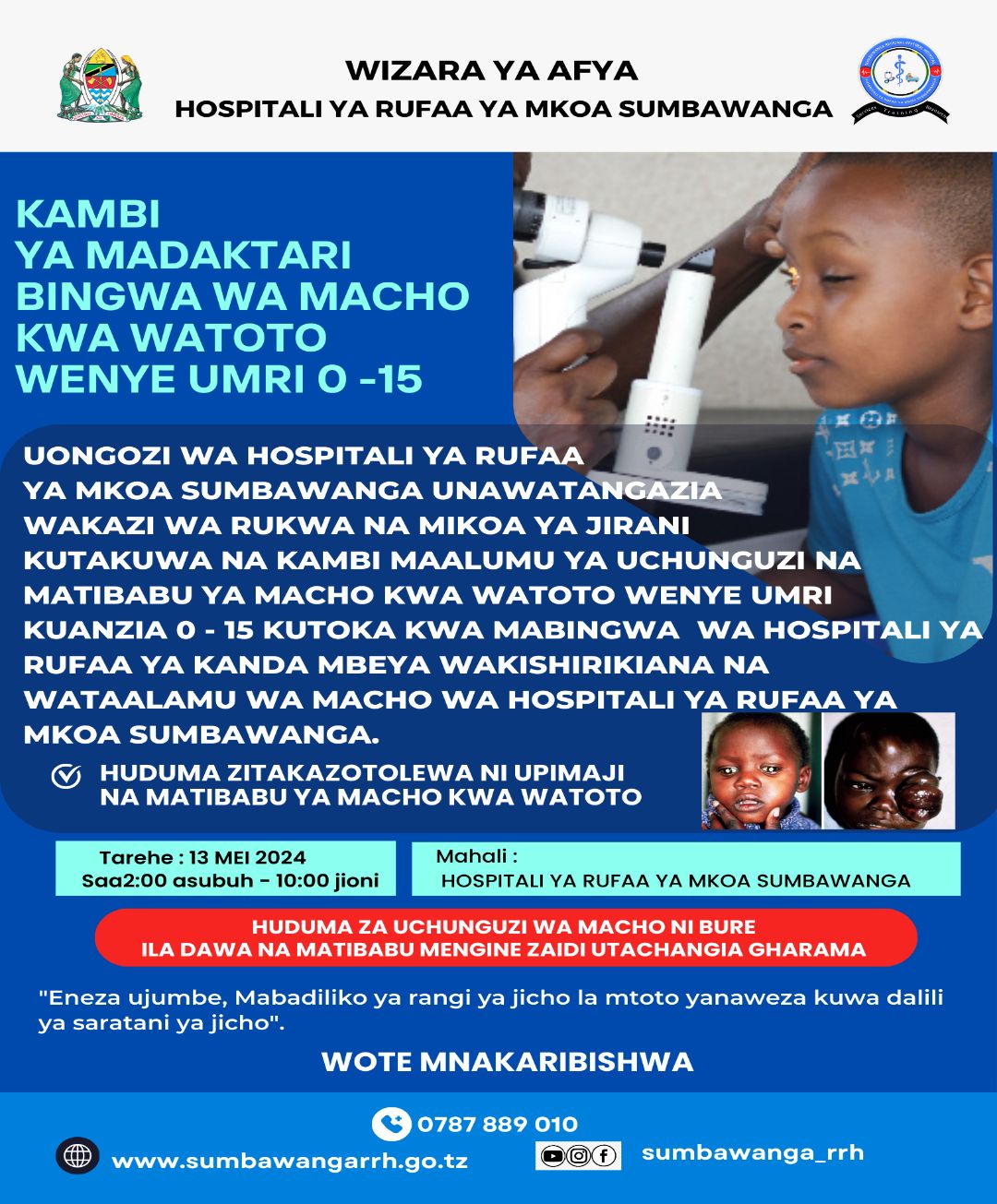 KAMBI YA MADAKTARI BINGWA WA MACHO KWA WATOTO WENYE UMRI KUANZIA 0-15